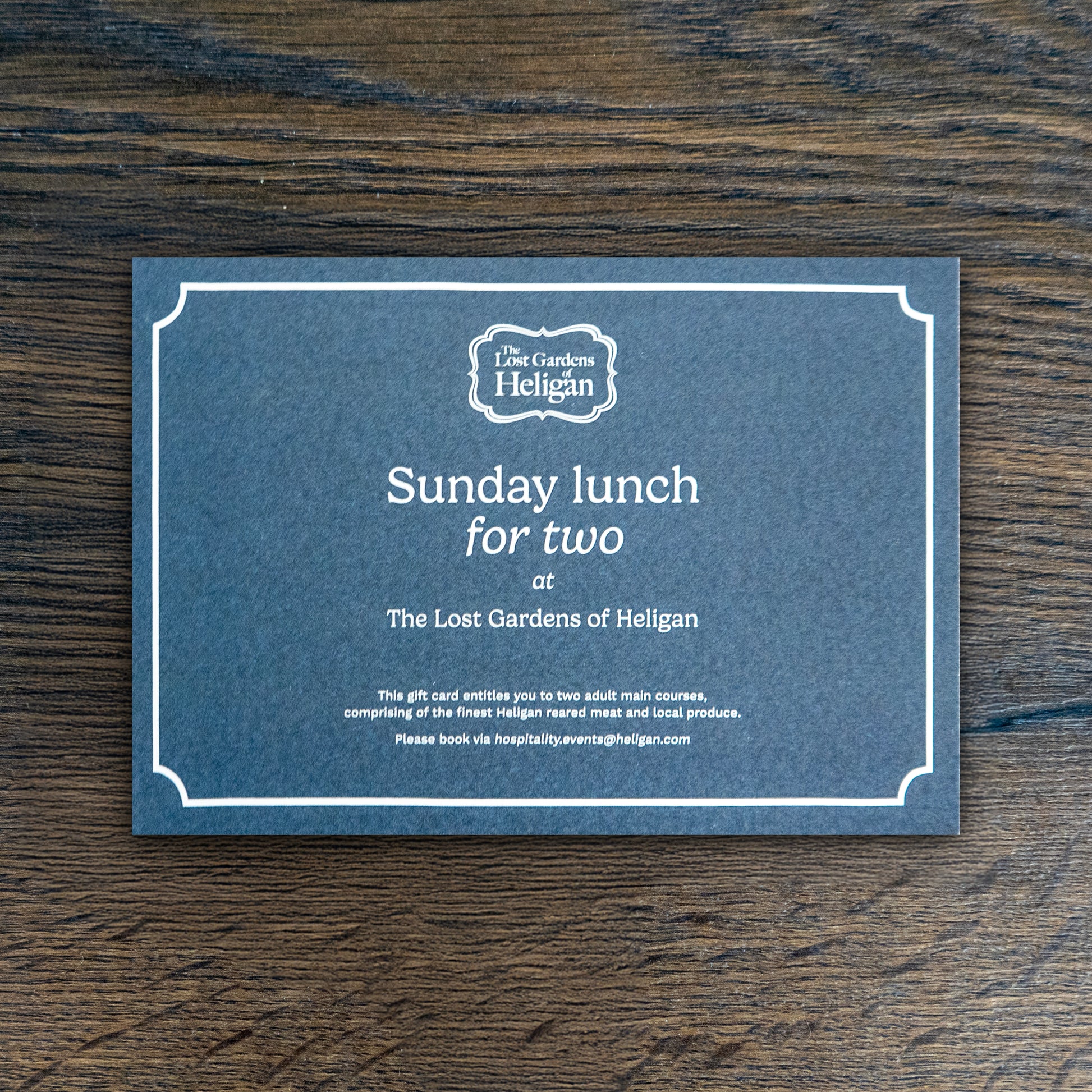This gift card includes 2 adult main courses and 2 small Sunday roasts comprised of the finest Heligan reared meat and local produce (vegetarian option are available).