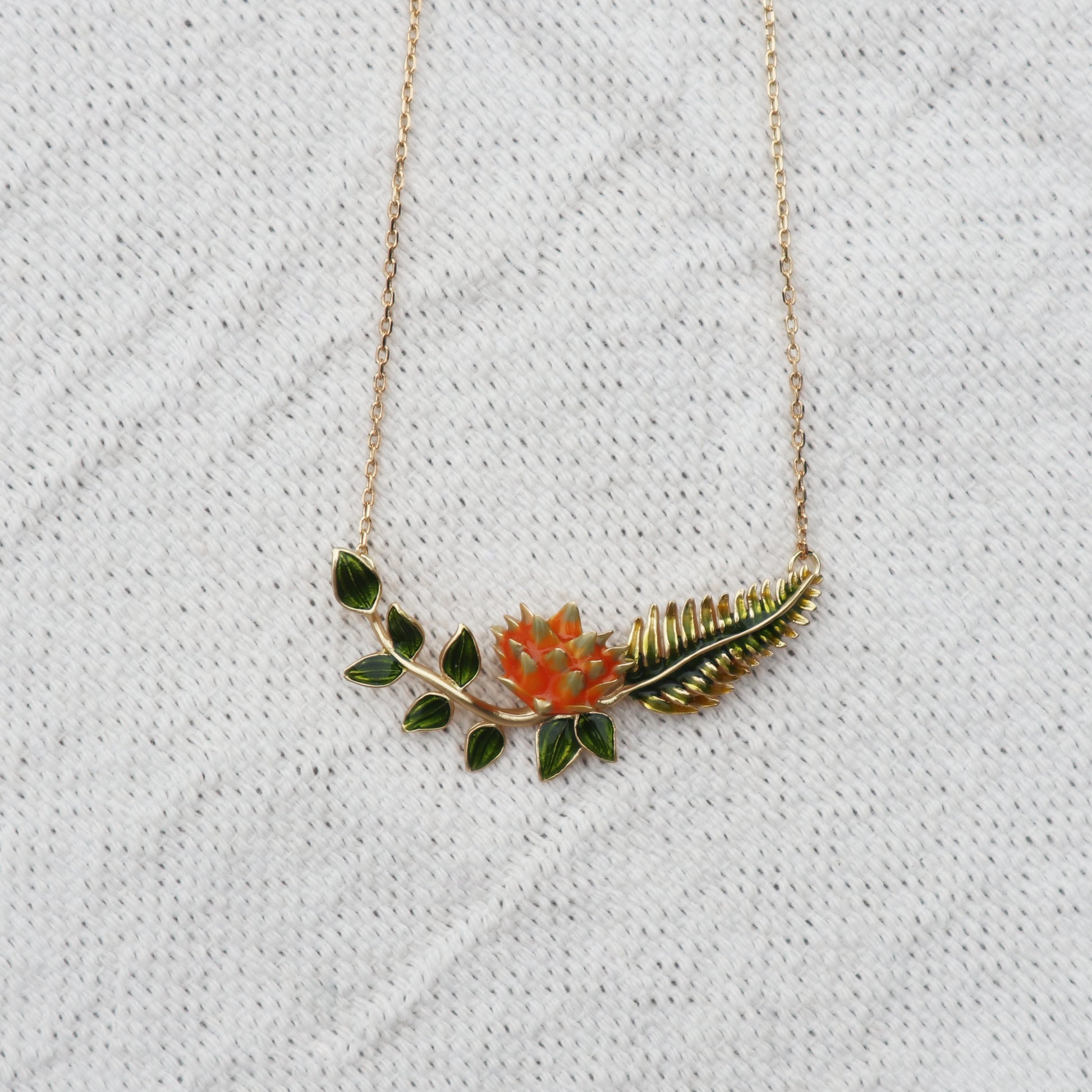 Inspired by the exotic blooms that appear in our ornamental gardens, this Ginger Lily Necklace will bring a sense of wonder to your everyday. Featuring a beautiful enamel ginger lily amongst rich green leaves. This wonderous piece has been designed exclusively for Heligan.