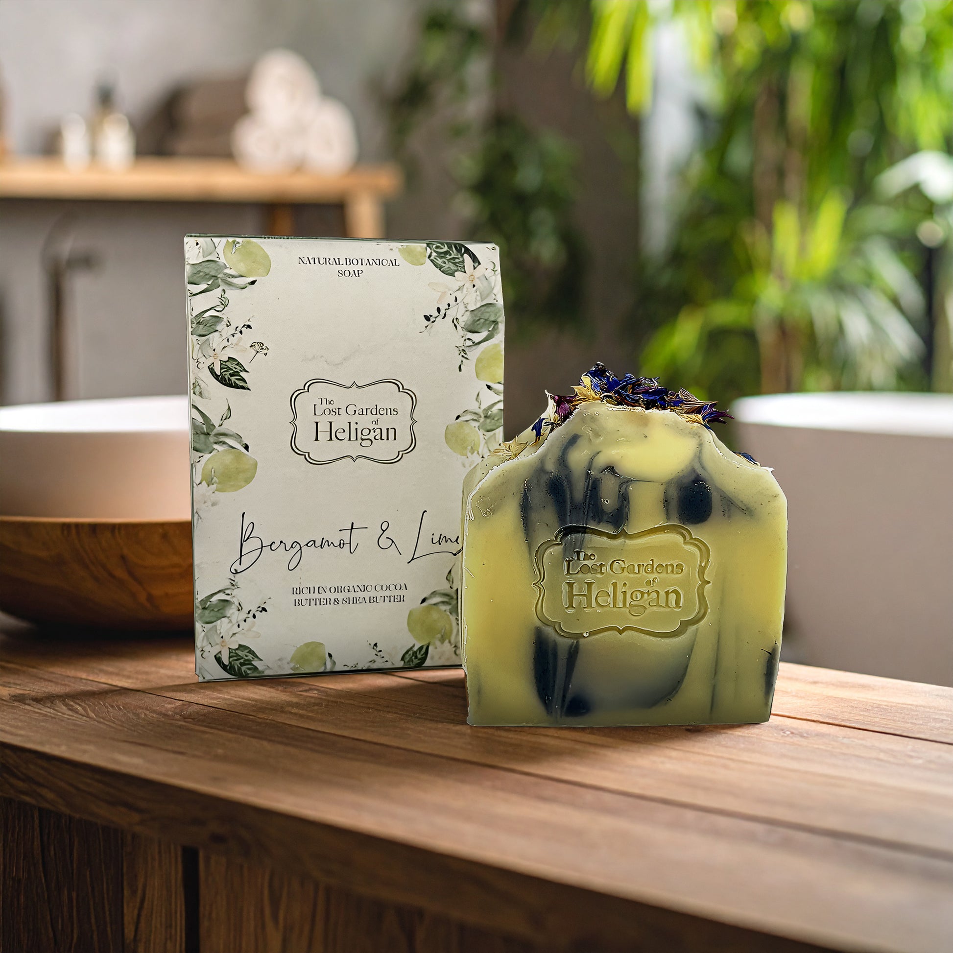 Experience the fresh, energizing scent of Heligan Bergamot & Lime Botanical Soap. Handmade by Bramblewood for Heligan, this natural soap is inspired by the English Countryside and beautifully decorated with botanicals. With small batch production, every bar is crafted with care and infused with the finest essential oils.
