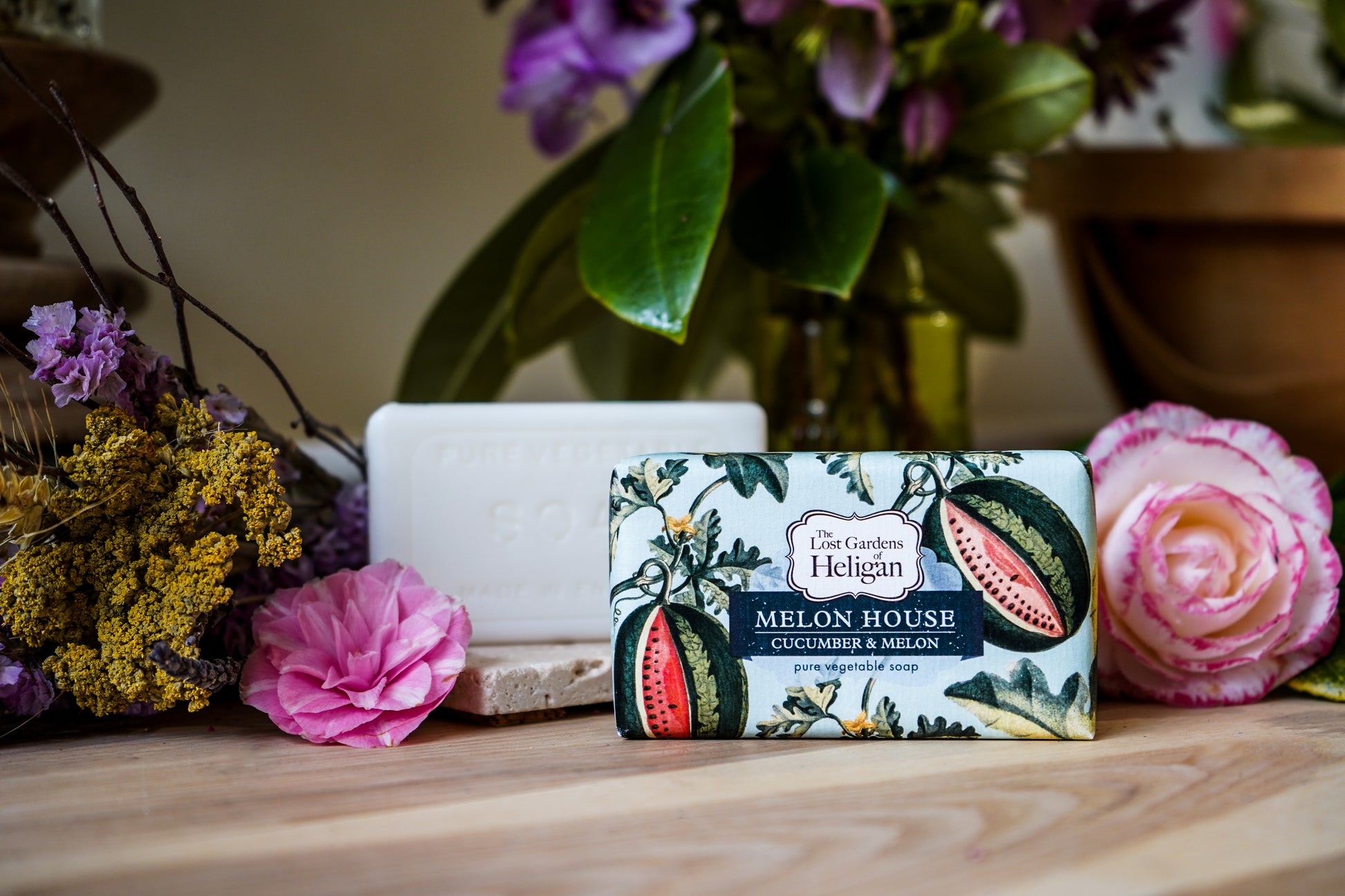 Made in the English countryside, our Heligan soaps are inspired by the botanicals found within our garden and wider estate. Each soap is wrapped in environmentally accredited paper and their beautiful illustrations are printed with vegetable-based inks.