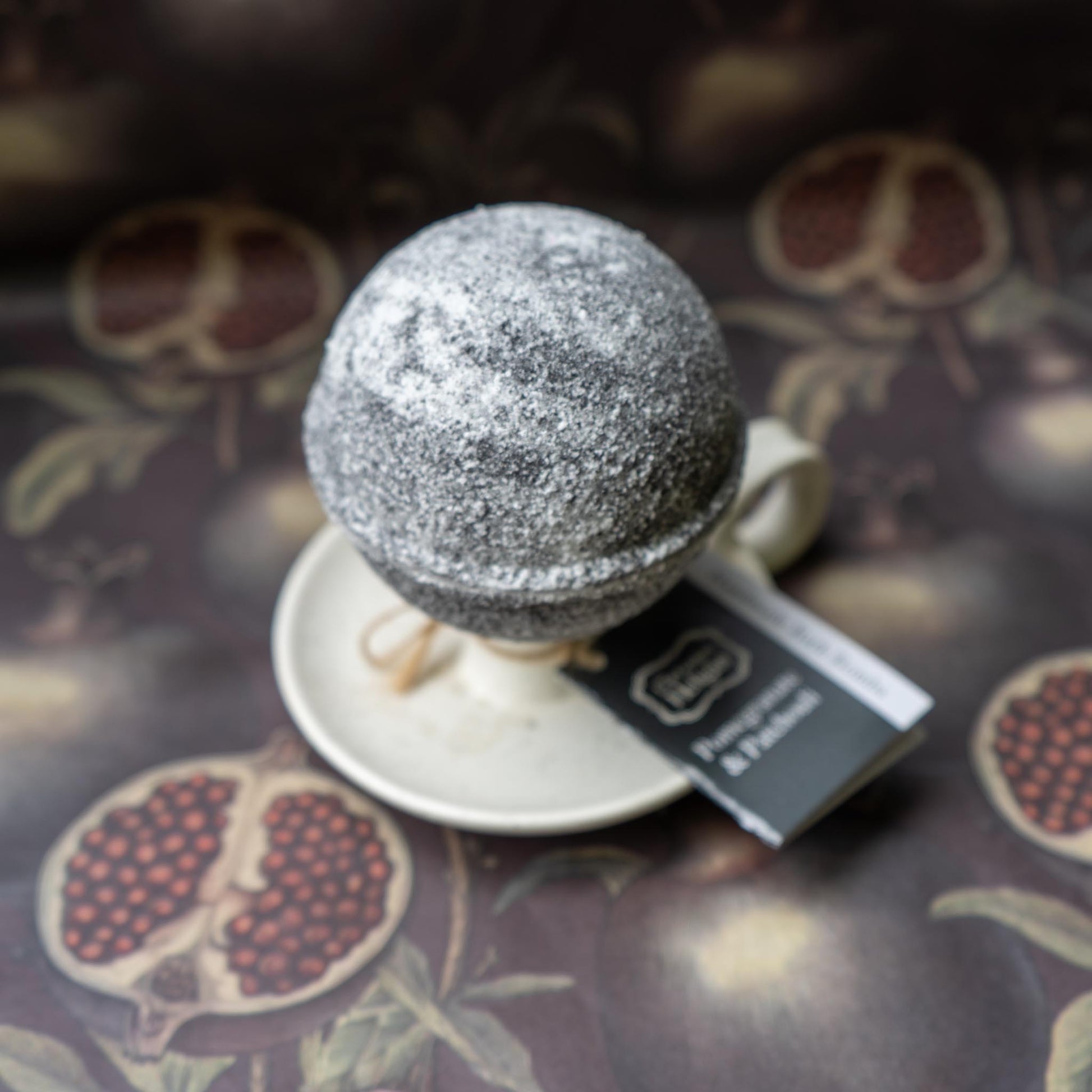 A dark blend of sensual tobaccos, cloves, and patchouli infused with decadent pomegranate seeds, golden amber resins and fresh apple accords. Wrapped in luxury tissue, illustrated with the botanicals and scents that inspired each bath bomb.